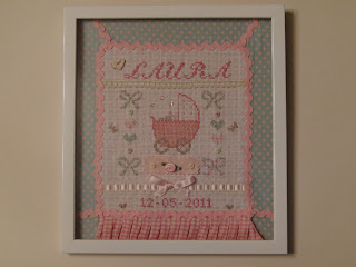 Finísimo es poco decir, es precioso, te ha quedado dulce total, seguro que la mamá de Laura está encantada cuando haya recibido el cuadro, al que no le falta detalle, felicidades